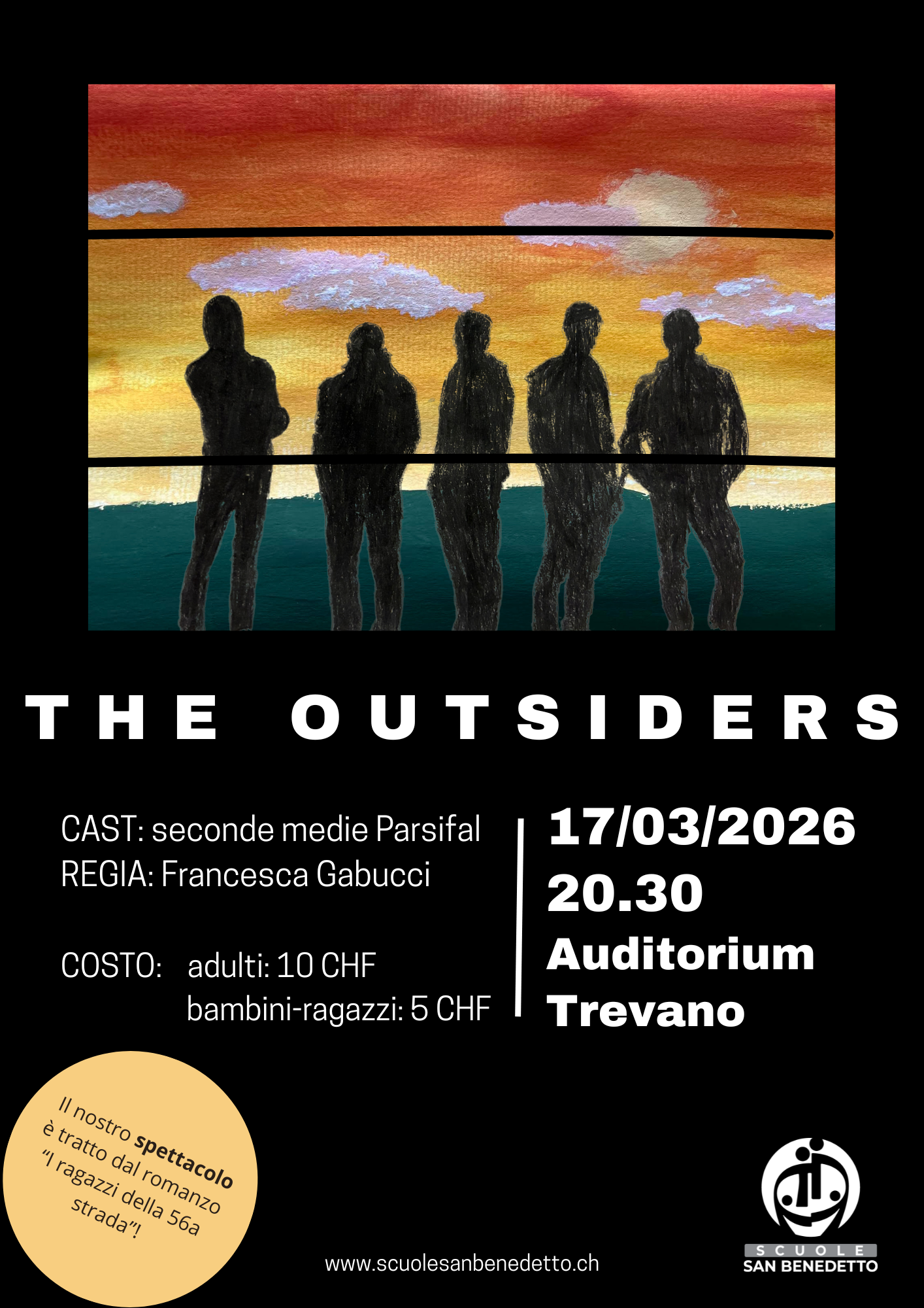 Martedì 17 marzo alle ore 20.30 andrà in scena la rappresentazione teatrale The Outsiders curata dalle classi seconde della scuola media Parsifal.