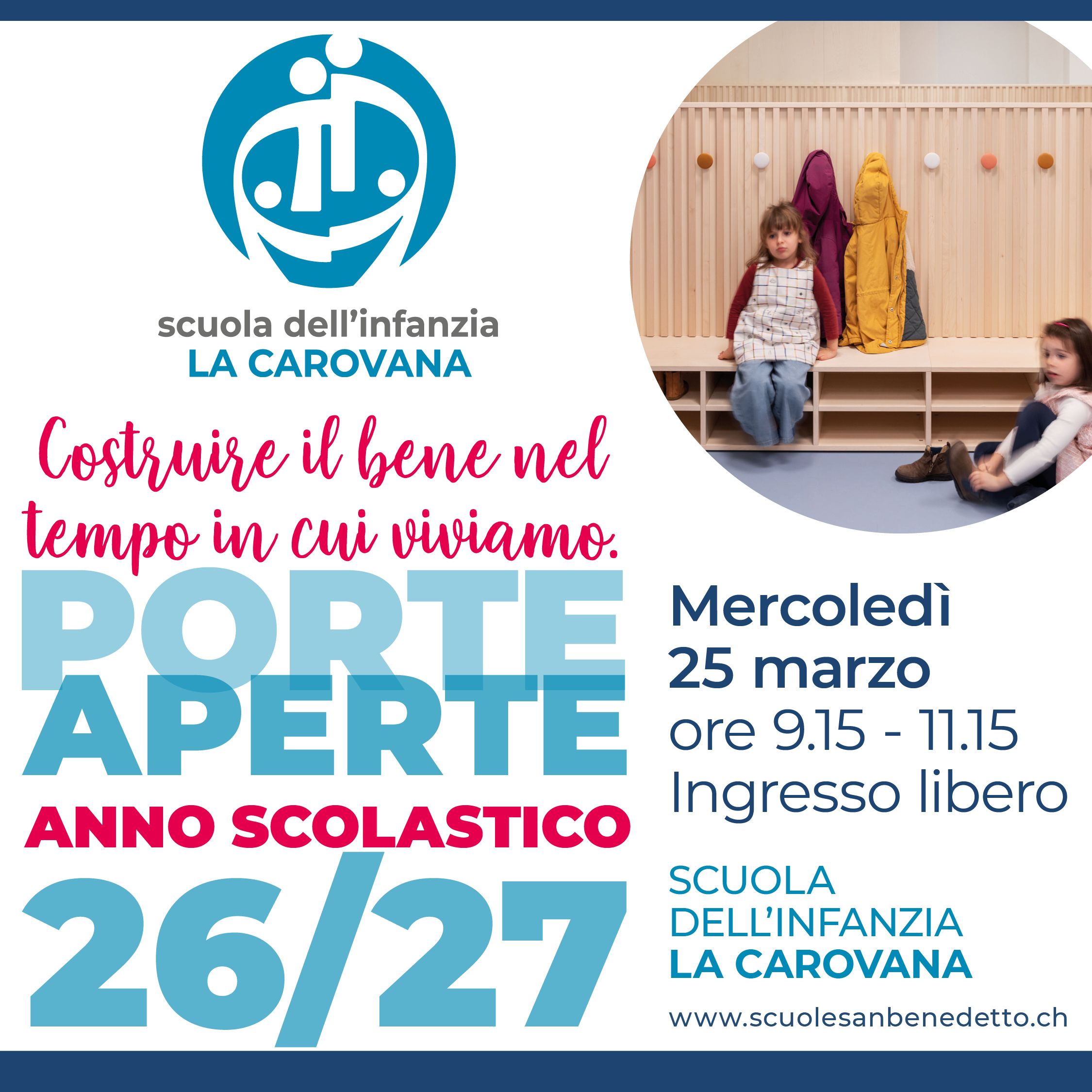 Le porte aperte sono rivolte alle nuove famiglie initeressate all'anno scolastico 2026-2027.